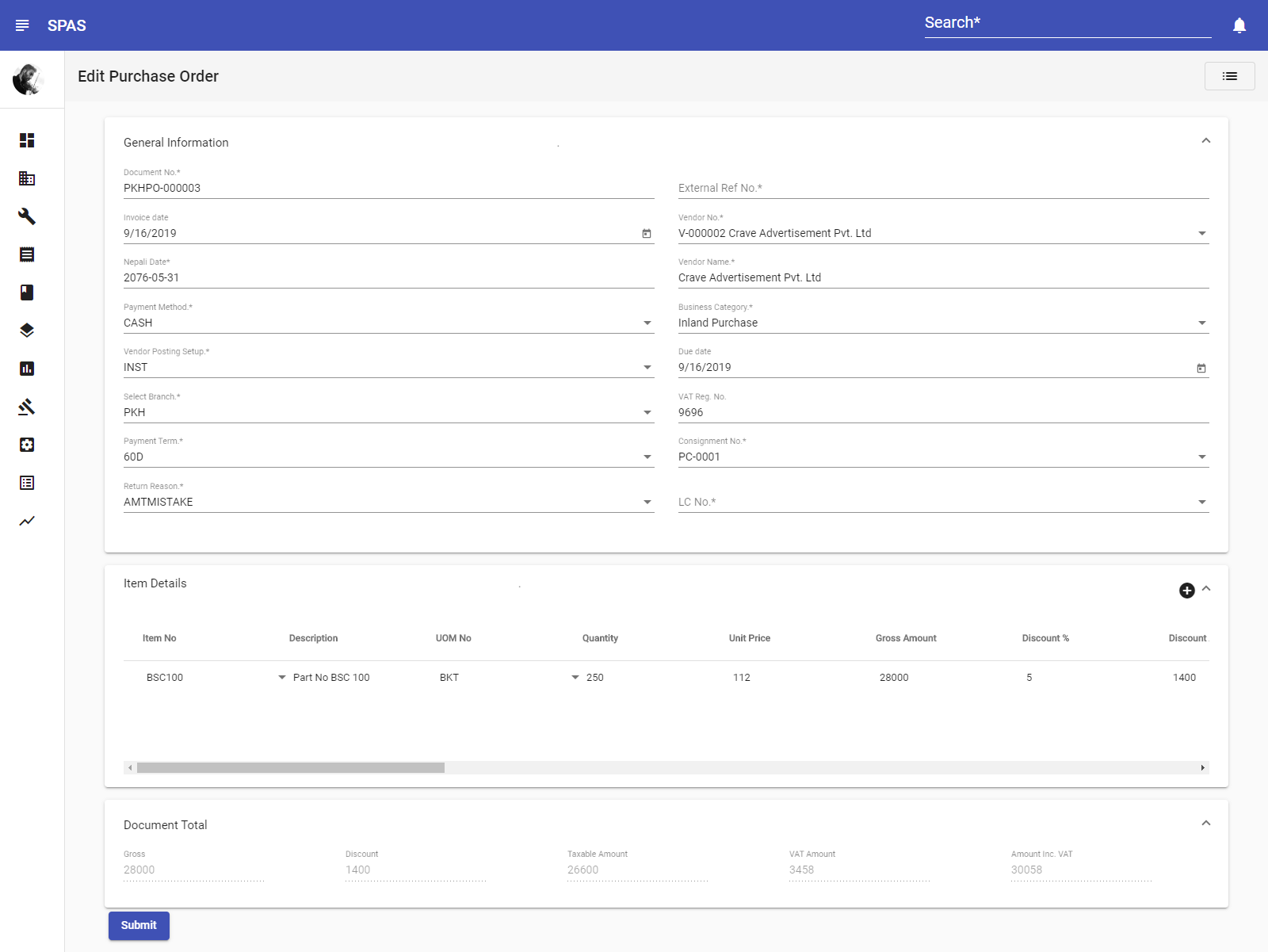 SPAS (Simplified Pernix Accounting System/Software) is a Web Based Accounting & financial management System developed by Tara Digital Solution Pvt. Ltd. SPAS is an integrated accounting software solution fit for small to large scale trading, manufacturing and other service businesses. SPAS is a one stop solution for businesses requiring robust accounting solution and comply with Tax & Vat Rules of Nepal.