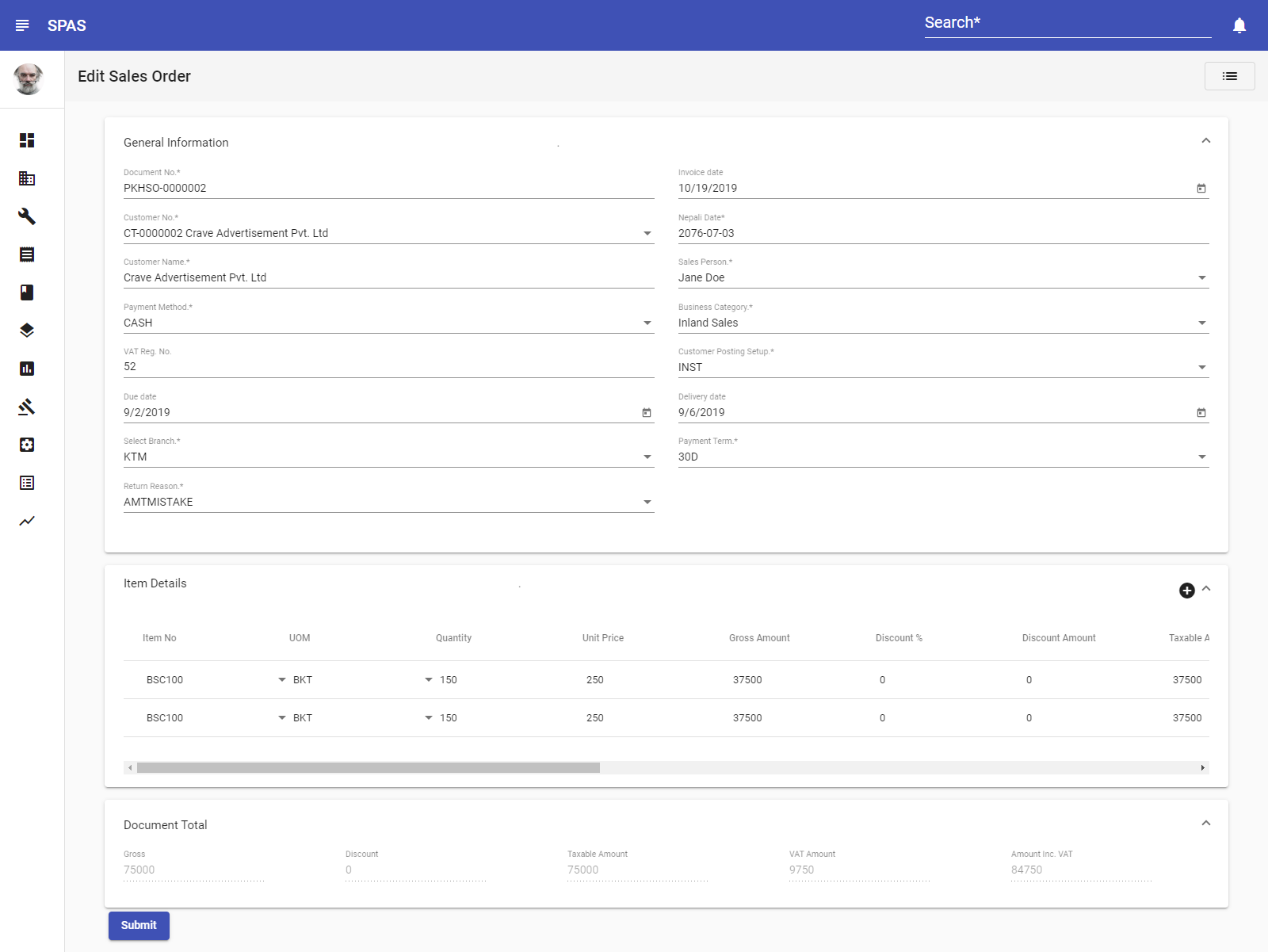 SPAS provides comprehensive features pertaining to different aspects of inventory management. With the features crucial to stock management of warehouse or firm, it includes robust and precise workflows to ensure that inventory of its users are well managed. Features of Inventory management module includes: Stock adjustment, purchase, sales, branch transfer, inventory valuation and reports.